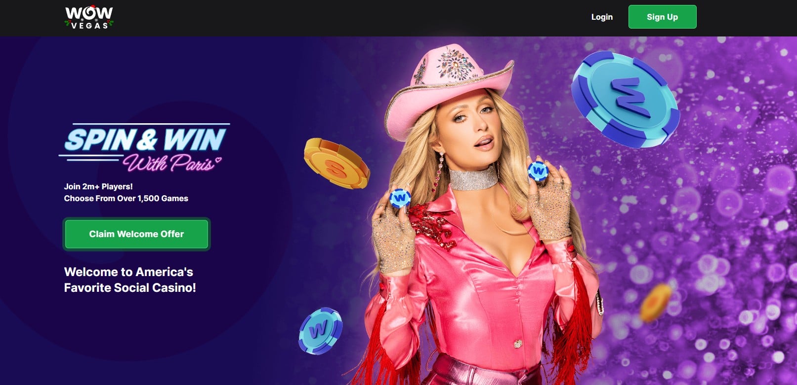 - Daily Login Bonus: Every day you log in to your WOW Vegas account, you receive 0.30 SC + 1,500 WOW Coins. With your welcome bonus and this daily login reward combined, you can enjoy casino-style games on the website without an initial purchase.